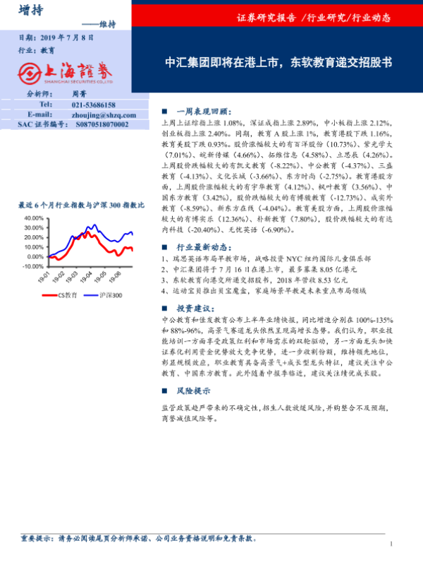 【上海证券】【20190708】20190708-上海证券-教育:中汇集团即将在港上市,东软教育递交招股书-8页