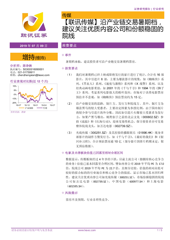 【粤开证券】【20190709】沿产业链交易暑期档,建议关注优质内容公司和份额稳固的院线-5页