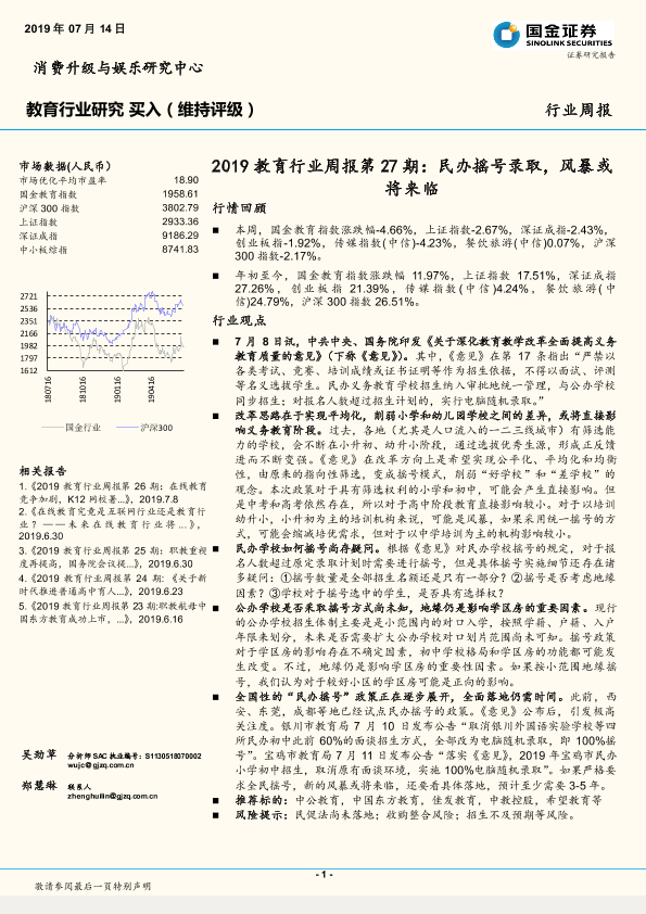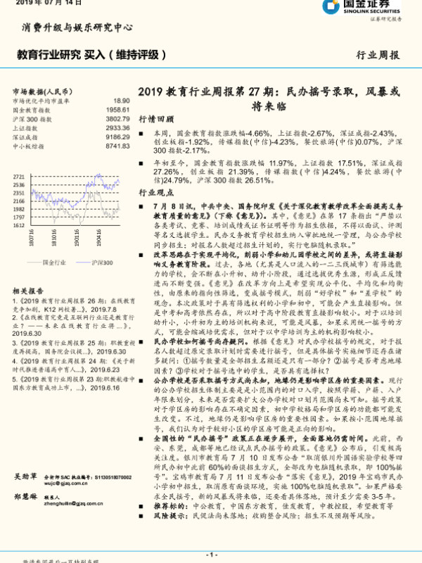 【国金证券】【20190714】2019教育行业周报第27期:民办摇号录取,风暴或将来临-7页