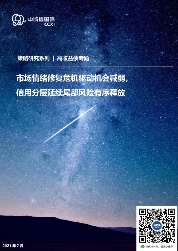 【中诚信国际】【202107】中诚信-高收益债2021年上半年回顾及下阶段展望:市场情绪修复危机驱动机会减弱,信用分层延续尾部风险有序释放-22页