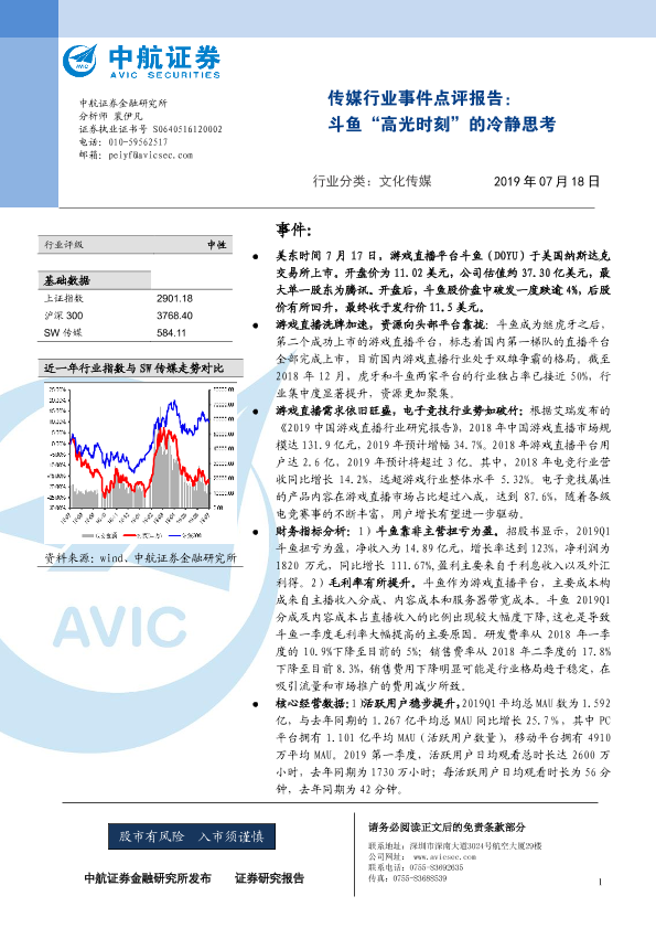 【中航证券】【20190718】传媒行业事件点评报告:斗鱼“高光时刻”的冷静思考-3页