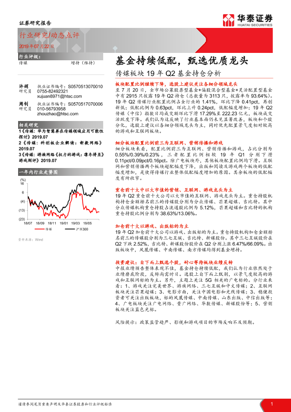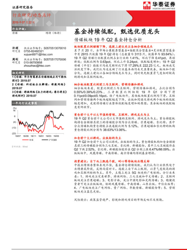 【华泰证券】【20190722】传媒板块19年Q2基金持仓分析:基金持续低配,甄选优质龙头-6页