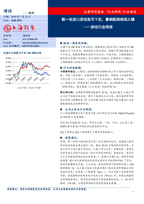 【上海证券】【20190722】游戏行业周报:新一批进口游戏版号下发,暑期新游表现火爆-8页