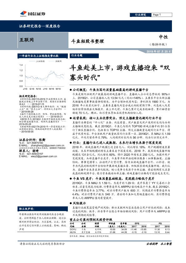 【国信证券】【20190725】互联网行业:斗鱼招股书整理:斗鱼赴美上市,游戏直播迎来“双寡头时代”-16页
