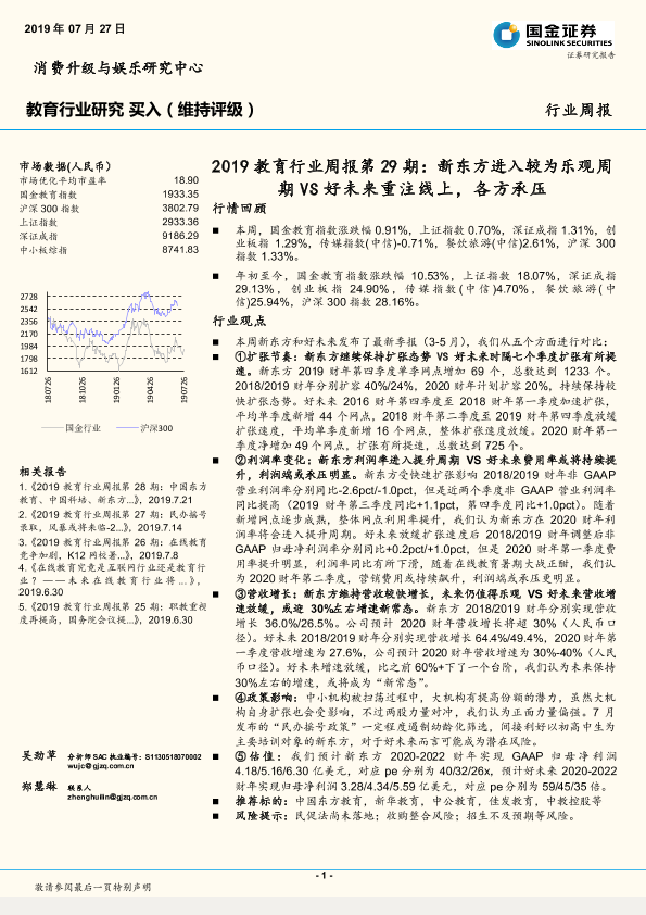 【国金证券】【20190727】2019教育行业周报第29期:新东方进入较为乐观周期VS好未来重注线上,各方承压-11页