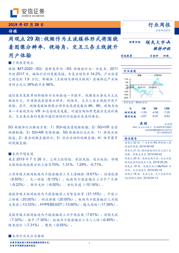 【安信证券】【20190728】视频作为主流媒体形式将围绕着图像分辨率、视场角、交互三条主线提升用户体验-20页