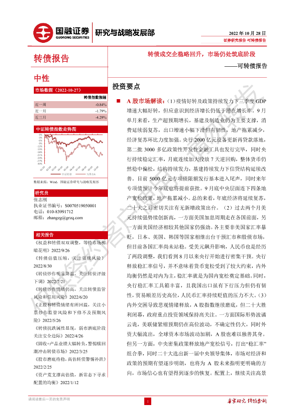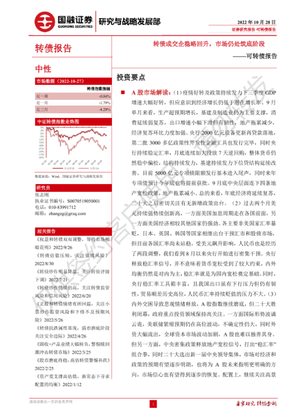 【国融证券】【20221028】可转债报告:转债成交企稳略回升,市场仍处筑底阶段-29页