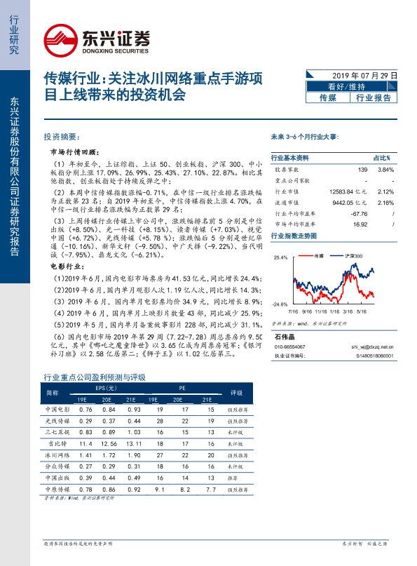 【东兴证券】【20190729】传媒行业:关注冰川网络重点手游项目上线带来的投资机会-15页