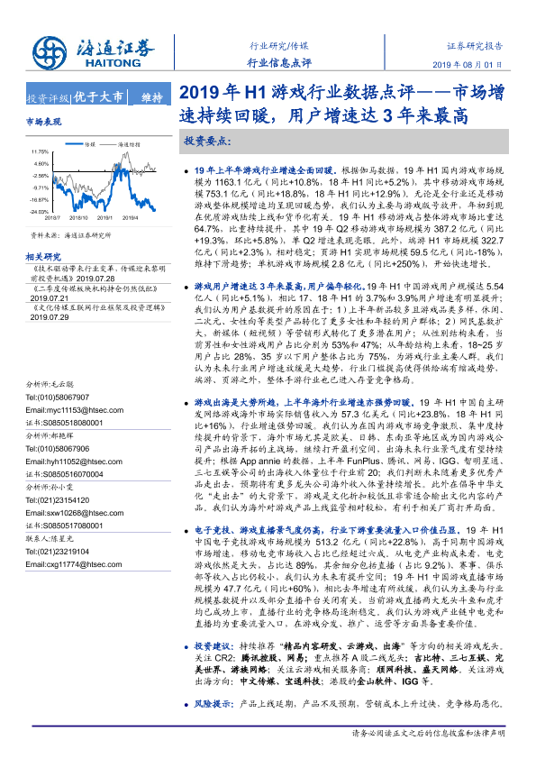 【海通证券】【20190801】2019年H1游戏行业数据点评——市场增速持续回暖,用户增速达3年来最高-5页