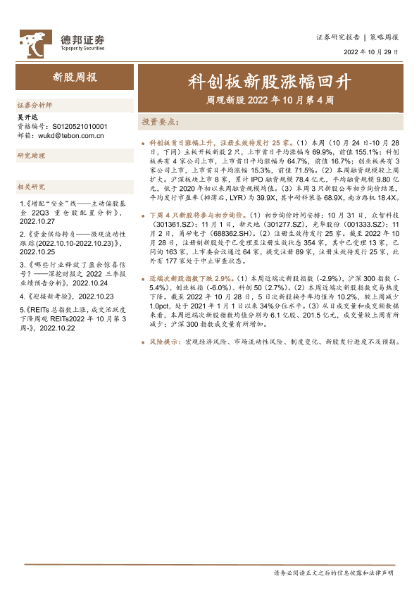 【德邦证券】【20221029】周观新股2022年10月第4周:科创板新股涨幅回升-17页