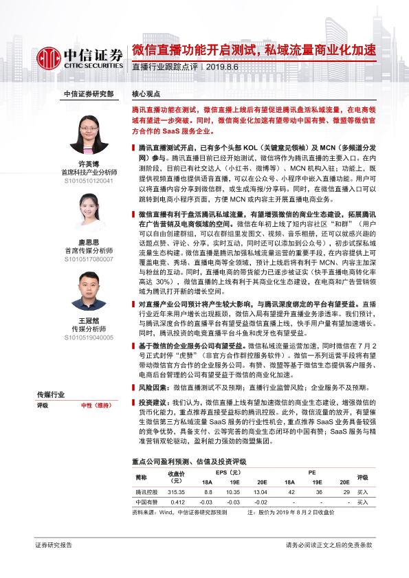 【中信证券】【20190806】直播行业跟踪点评:微信直播功能开启测试,私域流量商业化加速-2页