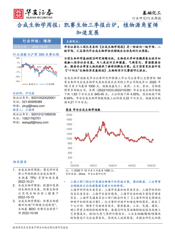 【华安证券】【20221029】合成生物学周报:凯赛生物三季报出炉,植物源角鲨烯加速发展-24页