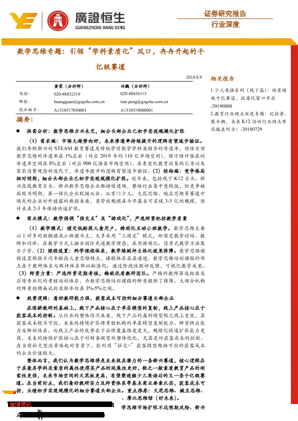【广证恒生】【20190809】数学思维专题:引领“学科素质化”风口,冉冉升起的千亿级赛道-24页