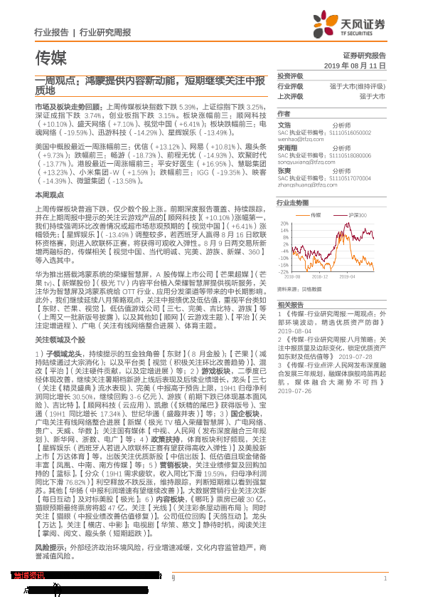 【天风证券】【20190811】传媒一周观点:鸿蒙提供内容新动能,短期继续关注中报质地-24页