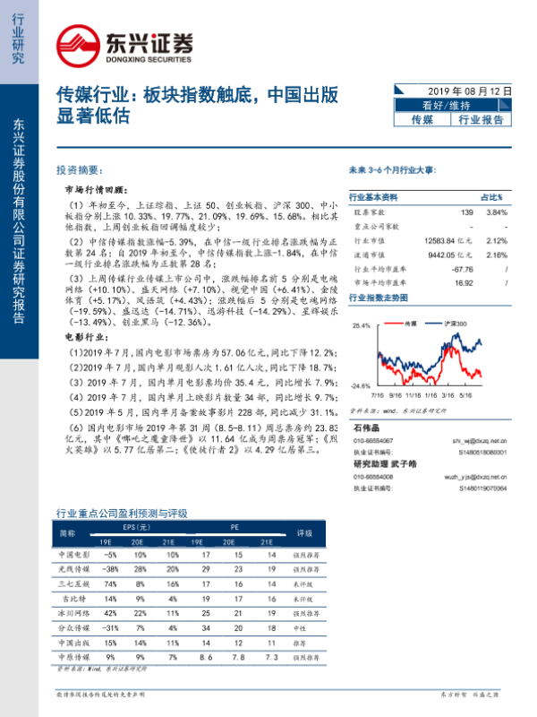 【东兴证券】【20190812】传媒行业:板块指数触底,中国出版显著低估-15页