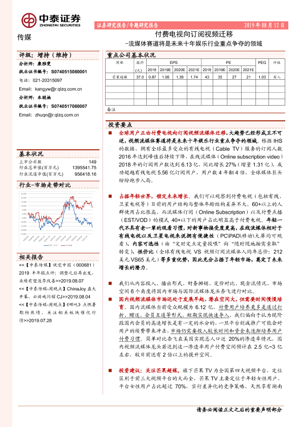 【中泰证券】【20190812】流媒体赛道将是未来十年娱乐行业重点争夺的领域:付费电视向订阅视频迁移-22页