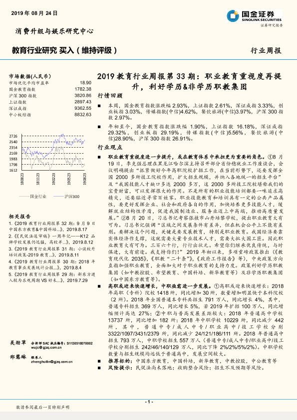 【国金证券】【20190824】2019教育行业周报第33期:职业教育重视度再提升,利好学历&非学历职教集团-12页