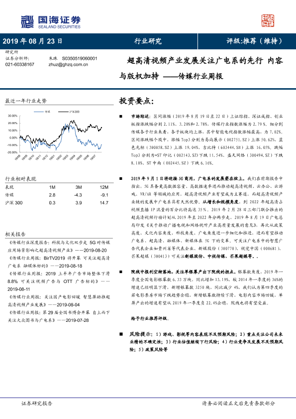 【国海证券】【20190823】20190823-国海证券-传媒行业周报:超高清视频产业发展关注广电系的先行内容与版权加持-20页