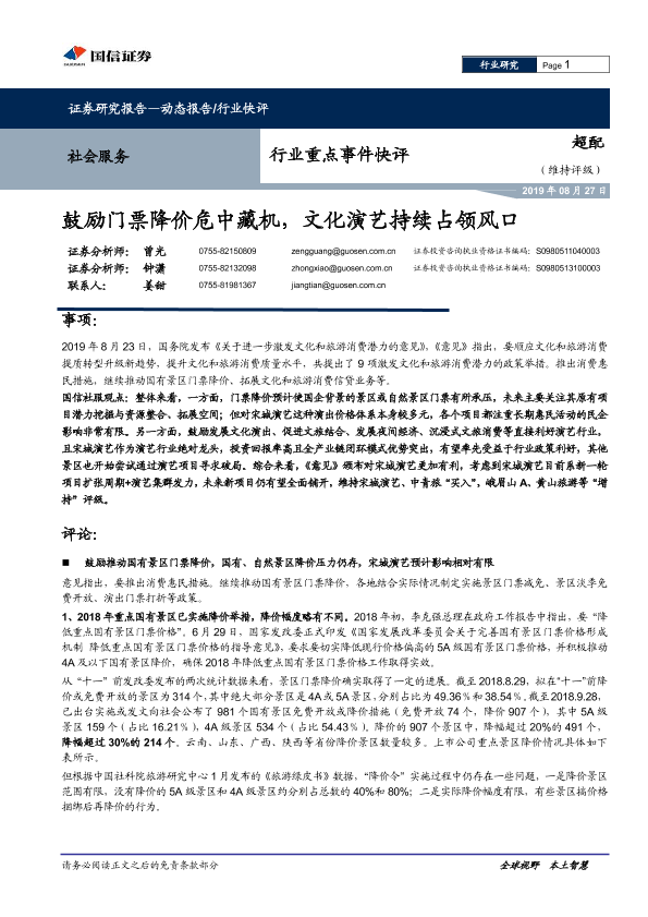 【国信证券】【20190827】社会服务行业重点事件快评:鼓励门票降价危中藏机,文化演艺持续占领风口-10页