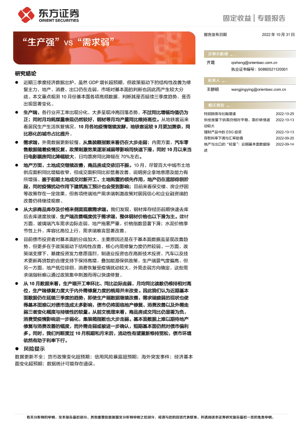 【东方证券】【20221031】固定收益专题报告:“生产强”vs“需求弱”-19页