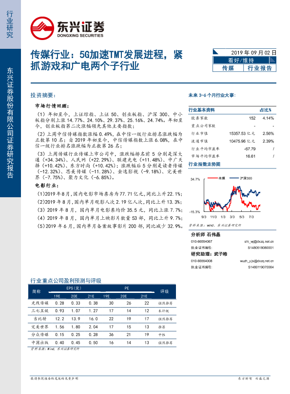 【东兴证券】【20190902】传媒行业:5G加速TMT发展进程,紧抓游戏和广电两个子行业-14页