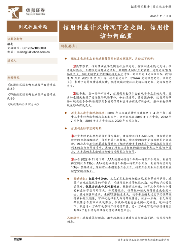 【德邦证券】【20221103】固定收益专题:信用利差什么情况下会走阔,信用债该如何配置-23页