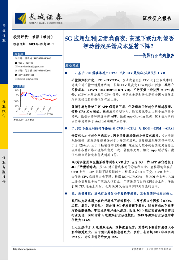 【长城证券】【20190902】5G应用红利 云游戏前夜:高速下载红利能否带动游戏买量成本显著下降?-15页