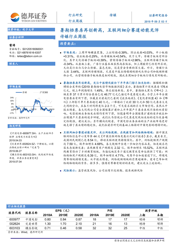 【德邦证券】【20190903】20190903-德邦证券-传媒行业周报:暑期档票房再创新高,互联网细分赛道动能充沛-3页