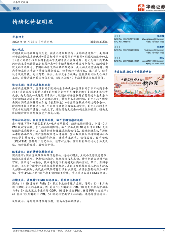 【华泰证券】【20221102】固定收益周报:情绪化特征明显-21页