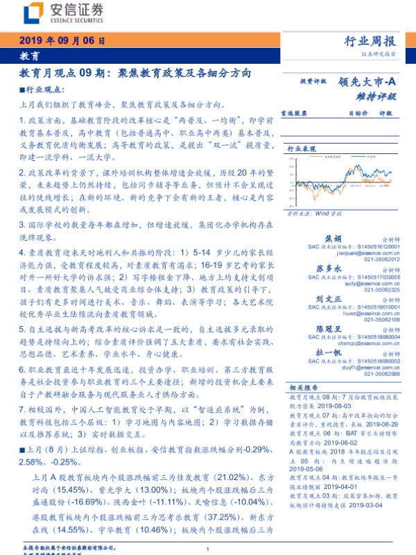 【安信证券】【20190906】教育月观点09期:聚焦教育政策及各细分方向-16页