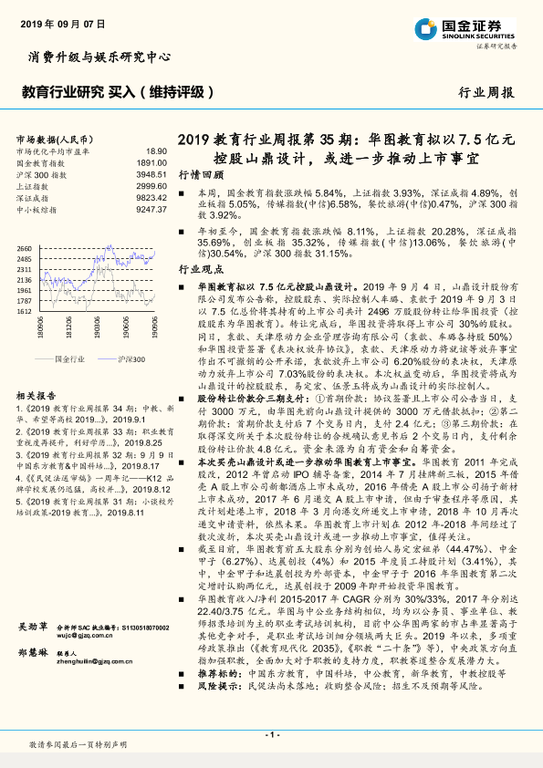【国金证券】【20190907】2019教育行业周报第35期:华图教育拟以7.5亿元控股山鼎设计,或进一步推动上市事宜-8页