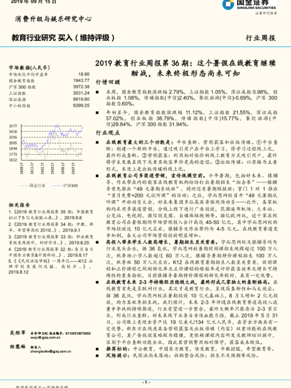 【国金证券】【20190915】2019教育行业周报第36期:这个暑假在线教育继续酣战,未来终极形态尚未可知-8页