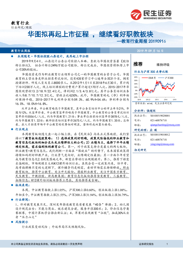 【民生证券】【20190916】20190916-民生证券-教育行业周报:华图拟再起上市征程,继续看好职教板块-11页