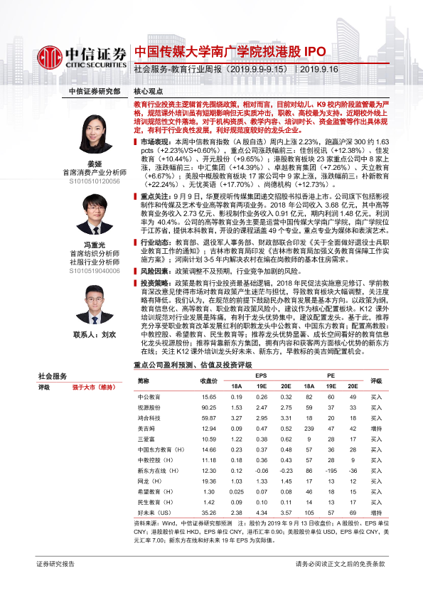 【中信证券】【20190916】社会服务-教育行业周报:中国传媒大学南广学院拟港股IPO-10页
