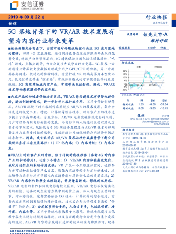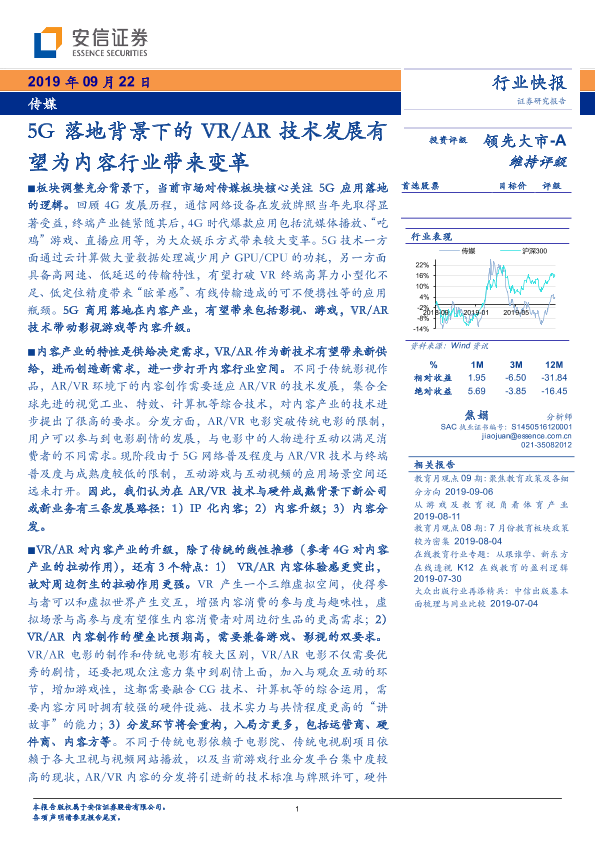 【安信证券】【20190922】5G落地背景下的VR AR技术发展有望为内容行业带来变革-4页