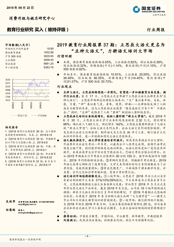 【国金证券】【20190922】2019教育行业周报第37期:立思辰大语文更名为“豆神大语文”,力耕语文培训大市场-7页