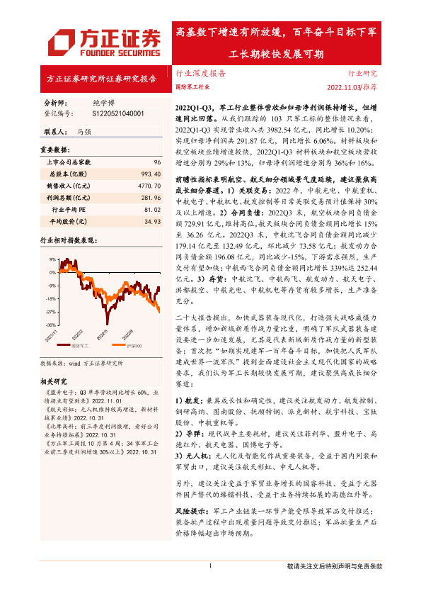 【方正证券】【20221103】国防军工行业深度报告:高基数下增速有所放缓,百年奋斗目标下军工长期较快发展可期-36页