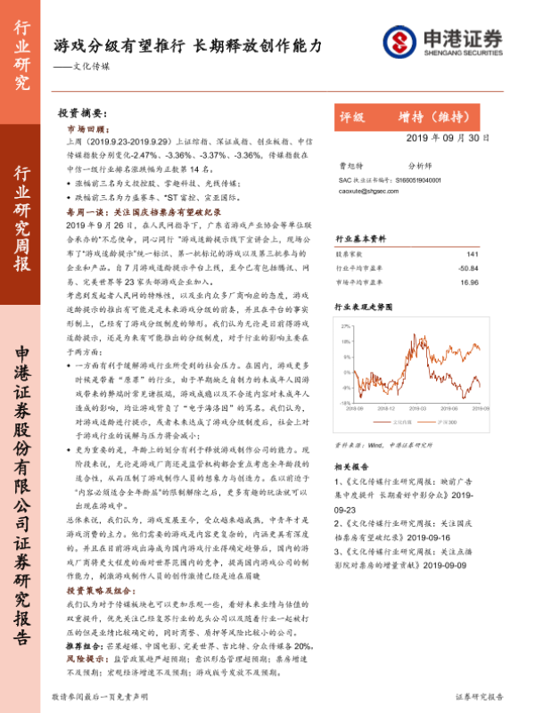 【申港证券】【20190930】游戏分级有望推行 长期释放创作能力-19页