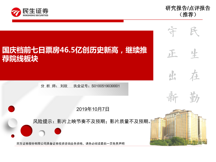 【民生证券】【20191007】国庆档前七日票房46.5亿创历史新高,继续推荐院线板块-6页