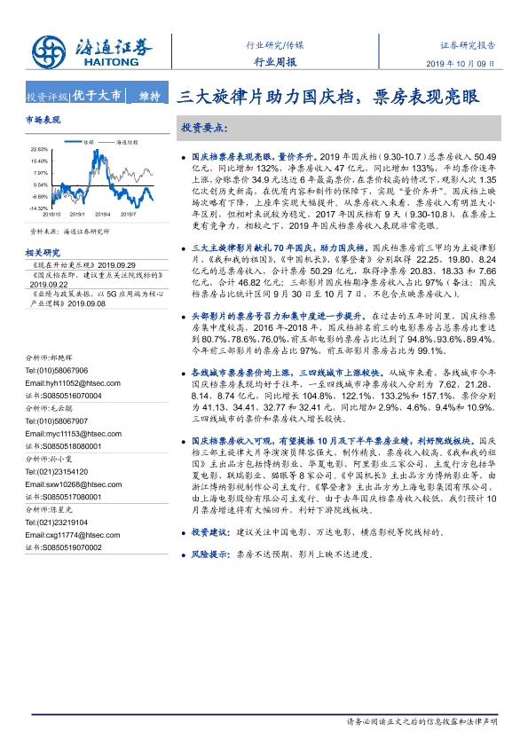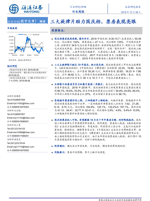 【海通证券】【20191009】20191009-海通证券-传媒行业周报:三大旋律片助力国庆档,票房表现亮眼-5页
