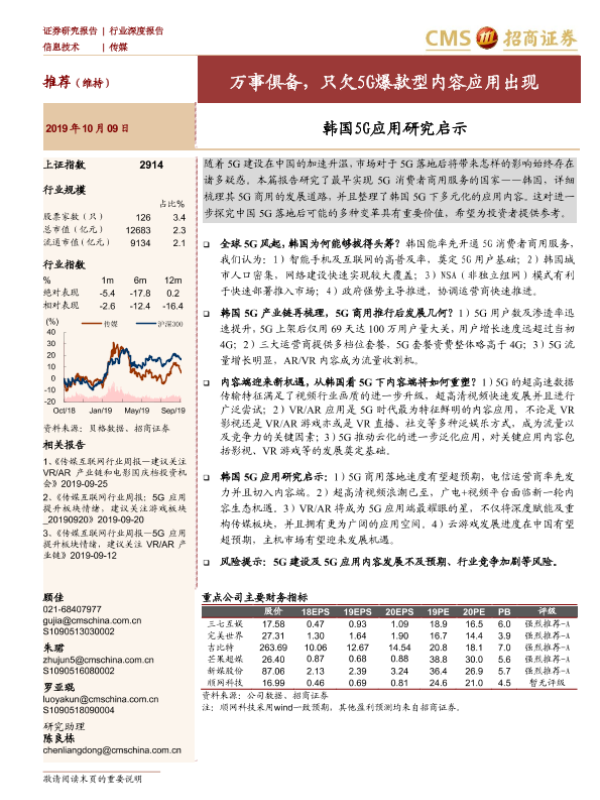 【海通证券】【20191009】20191009-招商证券-传媒行业深度报告:韩国5G应用研究启示-万事俱备,只欠5G爆款型内容应用出现-46页