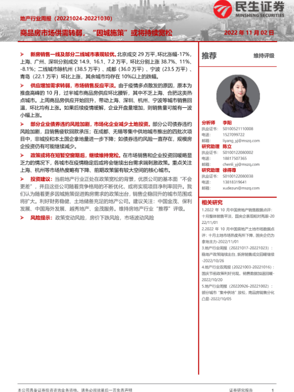 【民生证券】【20221102】地产行业周报:商品房市场供需转弱,“因城施策”或将持续宽松-20页