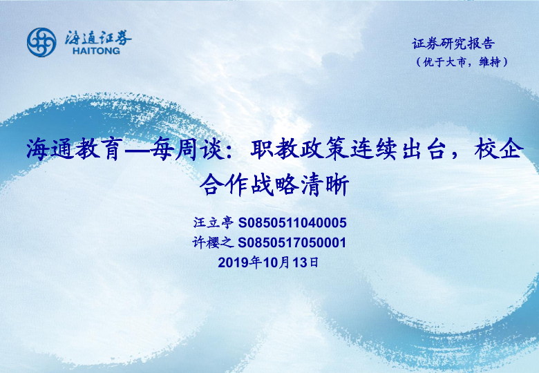 【海通证券】【20191013】海通教育—每周谈:职教政策连续出台,校企合作战略清晰-15页