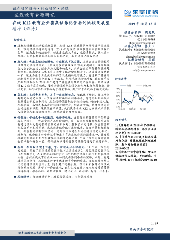 【东吴证券】【20191013】在线教育专题研究:在线K12教育企业密集证券化背后的比较及展望-19页