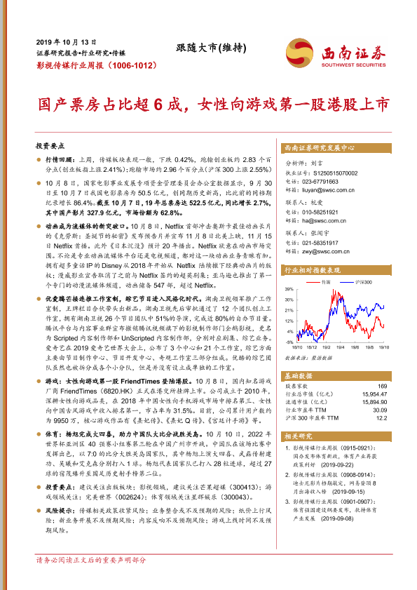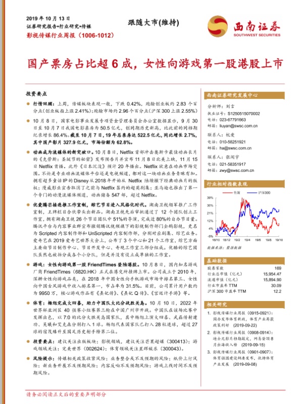 【西南证券】【20191013】影视传媒行业周报:国产票房占比超6成,女性向游戏第一股港股上市-17页