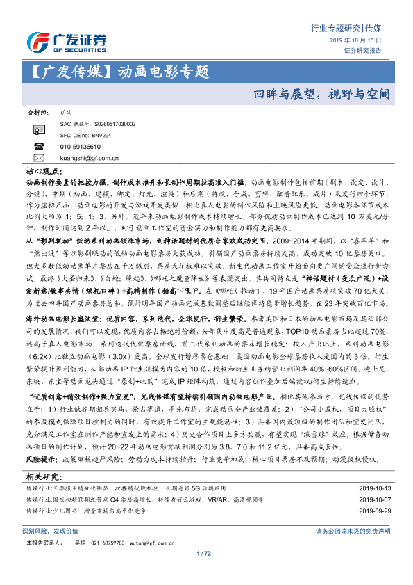 【广发证券】【20191015】【广发传媒】动画电影专题:回眸与展望,视野与空间-72页