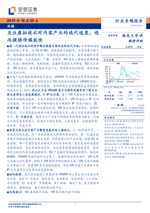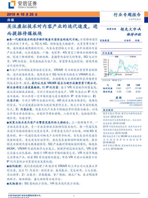【安信证券】【20191020】关注虚拟技术对内容产业的迭代速度,进而提振传媒板块-13页
