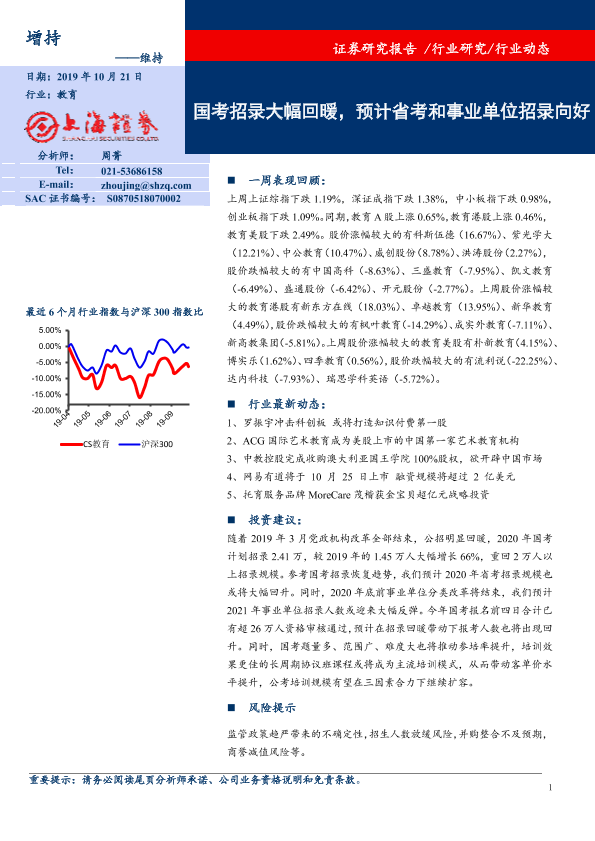 【上海证券】【20191021】教育:国考招录大幅回暖,预计省考和事业单位招录向好-8页