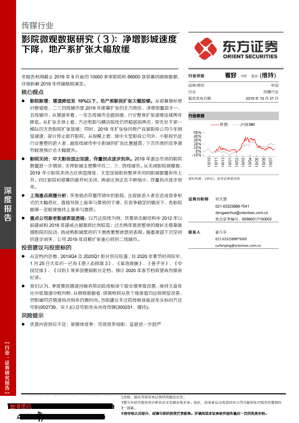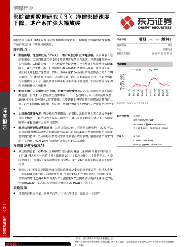 【东方证券】【20191027】传媒行业深度报告:影院微观数据研究(3):净增影城速度下降,地产系扩张大幅放缓-23页