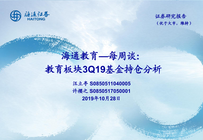 【海通证券】【20191028】海通教育—每周谈:教育板块3Q19基金持仓分析-19页